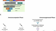 Groups of five 8- to 10-week-old male and female IFNAR−/− mice were immunized I.M. with 10 µg of BPL inactivated GP38+ GC- or FR1 vaccines adjuvanted with 5 µg PHAD in 2% SE at days 0 and 28 (Fig. 7a). On day 65, mice were injected with 5E5pfu of GP38+ GC+ diluted in PBS as determined above. Mice were sacrificed: (1) when weight loss reached ≥ 20% or (2) if severe clinical signs of disease were observed. Terminal bleeding was collected upon sacrifice when possible. Mice were bled at days 0, 4, and 14 to look for viremia in a VSV-N qPCR.