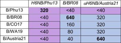 1. NASPA titers for each virus were generated using the indicated ferret antisera (italics) and correspond to the highest dilution factor above the control mean + 3 SD. Titers for NAs matching the antisera are bold.
