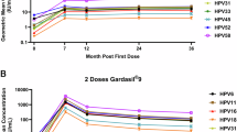 Bhatla, N. et al. Impact of age at vaccination and cervical HPV infection status on binding and neutralizing antibody titers at 10 years after receiving single or higher doses of quadrivalent HPV vaccine. Hum. Vaccin Immunother. 19, 2289242 (2023).