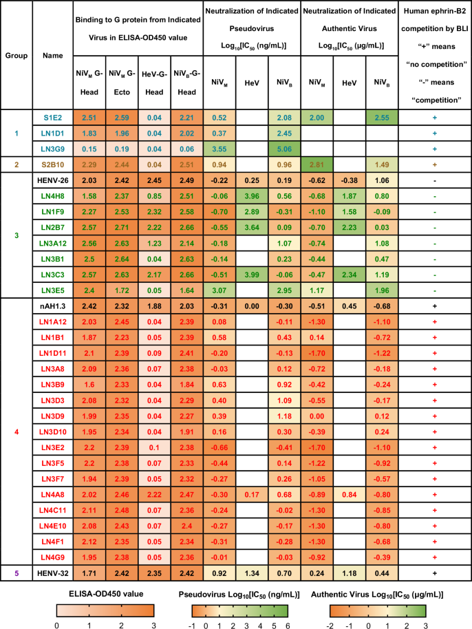 Table 1 Binding and neutralizing activities of NiV mAbs