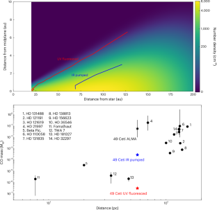 Worthen, K., Chen, C.H., Brittain, S.D. et al. Fluorescently excited CO emission in the 49 Ceti debris disk spatially resolved by JWST/NIRSpec. Nat Astron 9, 1680–1691 (2025). https://doi.org/10.1038/s41550-025-02664-x