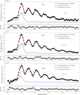 The code used for performing PSF subtraction on the NIRSpec IFU cubes, generating the CO fluorescence model and fitting the model to the data, which were used in this analysis, is available via Code Ocean at https://doi.org/10.24433/CO.8046058.v1.