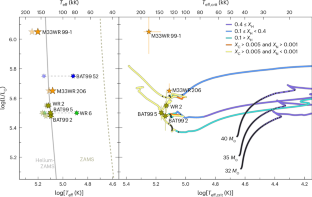 Extended Data Fig. 7 Advanced evolution of the custom GENEC models calculated with our adapted wind mass-loss scheme.