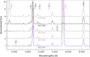 All observational material employed in the current study is available publicly from the sources listed in ‘Observational data’ in Methods. The resulting synthetic spectra from the atmosphere models that support the findings of this study are plotted in the Extended Data figures. The raw model data are available upon request from the corresponding author.
