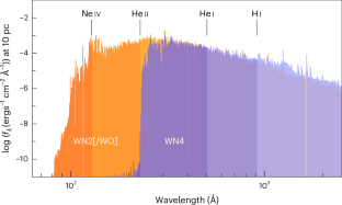 The standard branch of the PoWR atmosphere model code is described in refs. 16,17 and available at https://github.com/powr-code. The customized version by the corresponding author is described in refs. 1,18 and available on request. A brief conceptual overview is further given in ‘Stellar atmosphere modelling’ in Methods with the employed set of atomic data summarized in Extended Data Table 1.