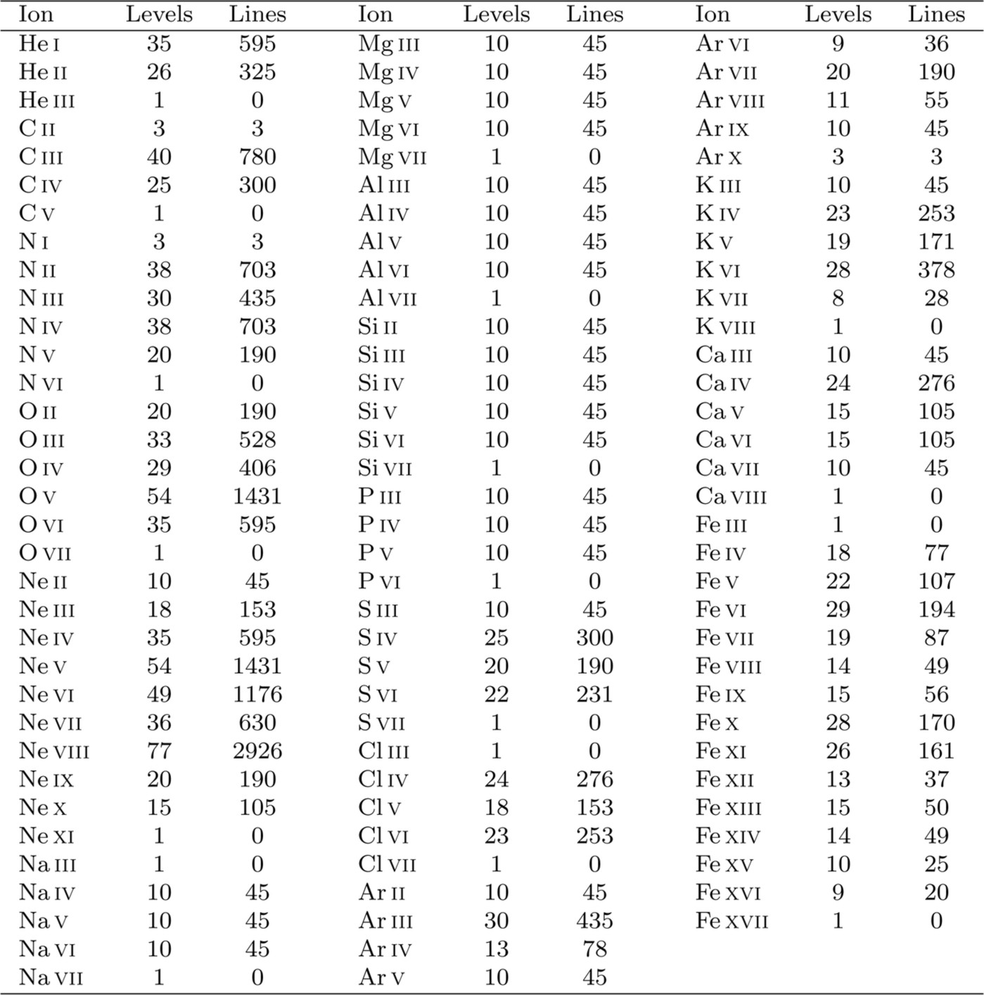 Extended Data Table 1 Number of levels and line transitions used in the PoWRHD models