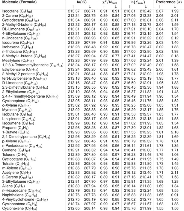 Extended Data Table 5 Bayesian model comparison for hydrocarbon candidates (part 2 of 2)
