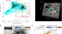 For the Major Flare Campaign, SPICE observed in sit-and-stare mode using the 4″ slit, capturing several wavelength windows in both the short-wavelength (SW; 70.4–79.0 nm) and long-wavelength (LW; 97.3–104.9 nm) channels, with spectral lines that sample a large temperature range from the chromosphere to very hot flare plasma (those lines are listed in Supplementary Table 1). Science-ready Level-2 (L2) data, obtained from the Solar Orbiter Archive (SOAR; https://soar.esac.esa.int/soar/) were used in this study, with the calibration pipeline described in the instrument paper2. Specifically, data from Data Release 5 were used52, which include several important updates to the calibration pipeline. The L2 SPICE data have a wavelength plate scale of 0.009623 nm per pixel for the LW channel and 0.0097517 nm per pixel for the SW channel. Onboard spectral summing was used to reduce telemetry, allowing sustained high-cadence observations over several hours to attempt to catch a flare, with an exposure time of texp = 4.8 s and overall cadence δt = 5.1 s. The spatial plate scale along the slit was 1.09798″, giving an approximate slit pixel size of 1,105 km × 303 km. Post-launch, the FWHM of the spatial PSF has been estimated to be 6.3 pixels, or 6.7″ (refs. 52,53), which for this dataset equates to ~2,032 km along the slit. For the SW channel the spectral resolution has been estimated as 7.8 pixels, and for the LW channel it is 9.4 pixels. The PSF is also tilted in the slit plane, such that there can be a y − λ rotation on the detector. Strong intensity gradients can thus introduce Doppler signal artefacts35. Uncertainties in the intensity within each wavelength bin were obtained using the sospice software package (https://pypi.org/project/sospice/), which calculates the contribution from photon shot noise, dark currents and readout noise54.