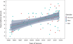 Sanz-Menéndez, L. et al. Time to tenure in Spanish universities: an event history analysis. PLoS One 8, e77028 (2013).