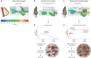 Allometric tissue-scale stresses at an implant’s surface trigger pathological foreign-body responses, mediated by the activation of mechanoresponsive myeloid cells, that increase exponentially with body size.
