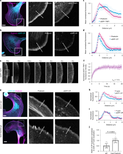 Fluorescence decay of PA–GFP–actin (left) after photoactivation in WT (top) and Twf1/Twf2-KO (middle) B16-F1 cells, and in Twf1/Twf2-KO cells expressing mCherry–TWF1 (rescue; bottom). Lamellipodia were marked with either mCherry–LifeAct or mCherry–TWF1 expression (right).