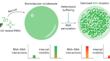 In protein–RNA systems, the increase of RNA concentration initially promotes the formation of condensates, which eventually is suppressed at higher RNA/protein ratios20,21,22,23. This phenomenon is known as re-entrant phase behaviour and is explained by the presence of repulsive electrostatic interactions between the negatively charged polymers at high RNA concentration20. Re-entrant phase behaviour was suggested as a mechanism exploited by cells to provide feedback control in transcription23 and to preserve RBPs’ solubility in the nucleus24.