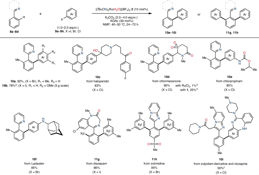 Table 1 Precatalyst applicability for the direct C(sp2)–H bond arylation of directing-group arenes using (pseudeo)halide electrophiles under mild reaction conditions