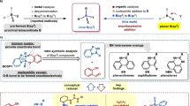 The diversification of privileged molecular scaffolds for improving properties is key in drug design and the development of novel pharmaceutical candidates1,2,3. To achieve desired transformations of the underlying key structural core, de novo multistep synthesis is usually required, which inevitably compromises the overall synthetic efficiency and time. Recently, bioisosteric replacement chemistry has emerged as an important tool for modifying existing biologically active compounds, potentially influencing the overall pharmacological activity of related compounds4,5,6,7,8,9,10,11. Moreover, the formation of covalent B–N bonds (isoelectronic with C=C) for the generation of novel boron-containing heterocycles has attracted much attention from a broad research community, including synthetic, medicinal and materials chemists12,13,14,15,16,17,18,19. In particular, benzazaborines, a class of boron–nitrogen (BN) heterocycles, are viewed as unique BN isosteres of naphthalenes (Fig. 1a)20,21,22,23,24,25,26. They often exhibit better therapeutic features, such as improved metabolic stability and aqueous solubility, than the parent naphthalene molecules, probably because the NH groups of the azaborines can act as hydrogen-bond donors for better binding to proteins27,28,29 (Fig. 1b). In addition to improving the biological activity of lead carbonaceous molecules, it also expands intellectual property space. Despite the great promises of BN isosteres, only a limited number of strategies have been reported so far with certain limitations30,31. Furthermore, most of the developments are on the synthesis of BN-1,2-azaboranaphthalene isomers, also named 2,1-borazaronaphthalenes23,24,25. By contrast, the preparation of regio-inverted structure BN-2,1-azaboranaphthalene (or 1,2-borazaronaphthalenes) analogues is still underdeveloped, originally reported by Cui et al.32, which can be accessed by reacting phenethyl imines, butyllithium and haloboranes followed by electrophilic cyclization (Fig. 1c). In addition, two-component strategies have been reported for BN-2,1-azaboranaphthalenes, although they typically suffer from limited substrate scope and require harsh reaction conditions33,34,35,36,37,38. In these methods, 2-formylphenylboronic acid was used for non-peripheral azaborine synthesis via aldol or Wittig-type reactions with α-amino esters or carbonyl compounds34,35,36,37,38. The seminal recent work by Dong et al. reported a three-component two-step synthesis of monocyclic 1,2-azaborines via ring opening of cyclopropyl ketone or imines using amine and dibromoborane in the presence of catalytic ZnBr2 (Fig. 1d)39.