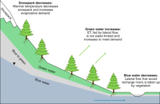 The impacts of climate change on the ecohydrology of forested mountain regions are uncertain. New high-resolution modelling suggests that during a hot, dry summer in the Alps, stressed vegetation capitalizes on downslope water subsidies, amplifying runoff deficits and further depleting water resources.