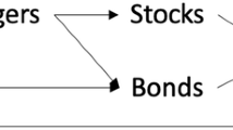 We apply these shocks to a company’s balance sheet. We reduce the asset side by the amount of the shock, and to keep the sheet balanced, we reduce the liability side by subtracting an equal amount of equity. If the shock sj felt by any company exceeds its equity, that company is considered technically insolvent, and any excess shock is not transmitted to the owners of the company. The excess shocks are accumulated to totals for the country and sector of the technically insolvent company (or as a domestic creditor liability in stage 4). Fund managers’ balance sheets are not affected by a shock to their managed funds. We continue looping until convergence, defined to be when the total transmitted shock during an iteration, \(\mathop {\sum }\limits_j \left( {s_j^l - s_j^{l - 1}} \right)\), is less than US$100,000. At convergence, we discontinue the propagation algorithm, and then sum the shocks in all companies to derive the aggregated shock at stage 3.