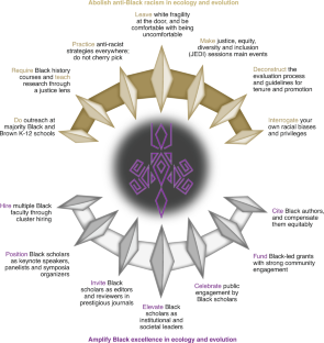 Our non-Black colleagues must fight anti-Black racism and white supremacy within the academy to authentically promote Black excellence. Amplifying Black excellence in ecology and evolution is the antidote for white supremacy in the academy.