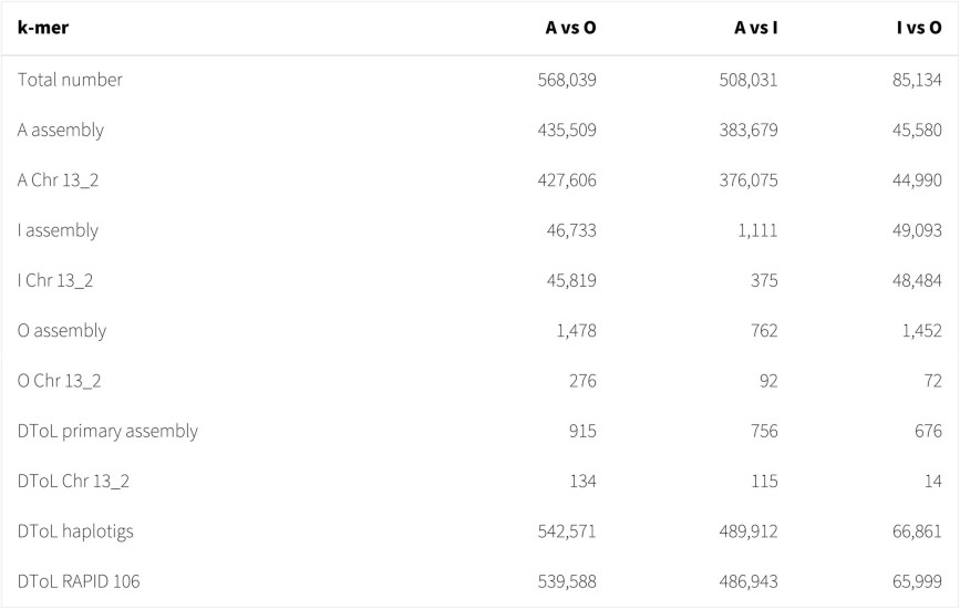 Extended Data Table 1 Significant k-mers associated with morph comparisons in I. elegans