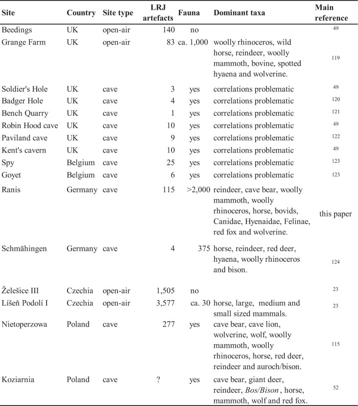 Extended Data Table 6 Overview of the main LRJ find spots and their associated faunal remains23,49,52,115,119,120,121,122,123,124