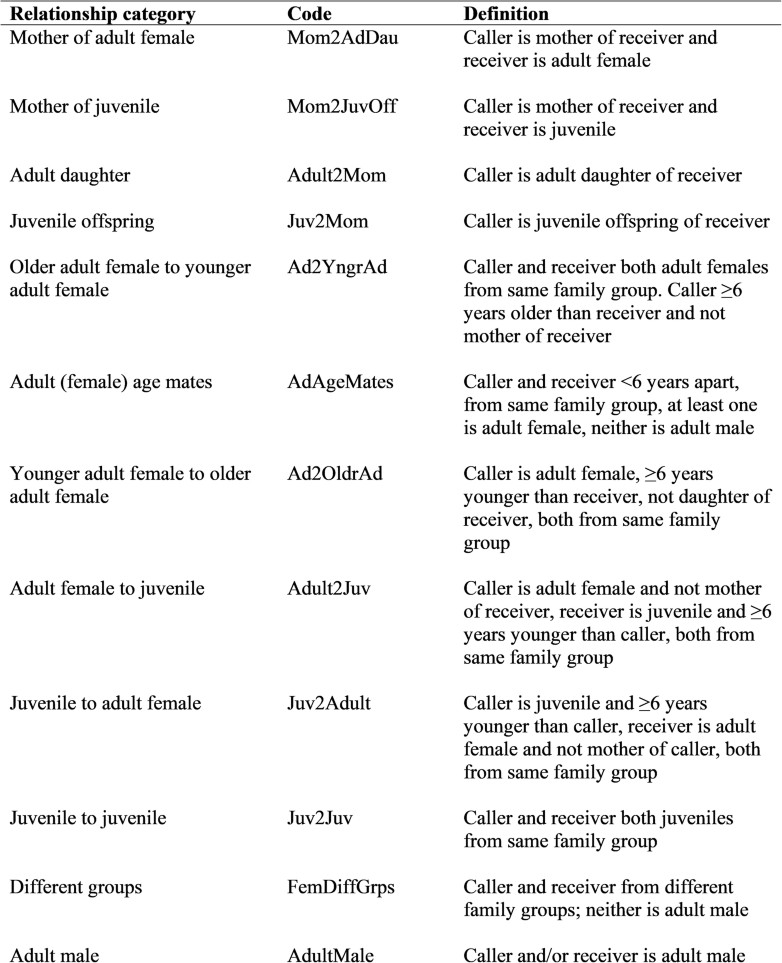 Extended Data Table 3 Definitions of social relationship categories between caller and receiver