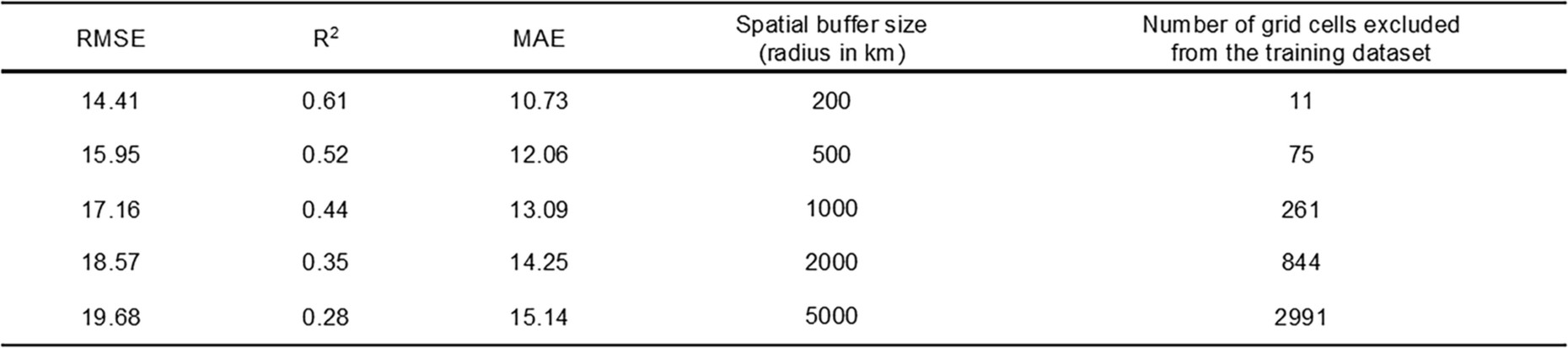 Extended Data Table 1 XGBoost model performance measured using a spatial leave-one-out approach, as described in the Methods section