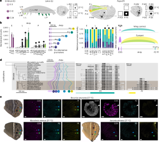 All data required for reproducing and extending the study are available in the main text or the Supplementary Information. Raw RNA-seq data for Bicyclus anynana are available under NCBI BioProject PRJNA1268022. Raw genome sequencing and assembly data for Junonia almana are available under NCBI BioProject PRJNA1300591. Lists of differentially expressed genes and enriched Gene Ontology terms generated in the transcriptomic analysis and lists of HCR probe sequences are available via figshare at https://doi.org/10.6084/m9.figshare.c.8026060.v1 (ref. 55). Source data are provided with this paper.