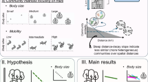 Despite the differences in setup (experiment versus real world), spatial scale, location and taxonomic coverage in the investigated research programmes, our partitioning approach—that is, the ecological Price equation—consistently showed that the vast majority of local arthropod biomass loss was linked to declines in species richness (Fig. 4). Even when accounting for species identity effects, 95.3% (Jena Experiment; 95% CI: 72, 116.4) and 93.5% (Biodiversity Exploratories; CI: 43.1, 150.3) of the total biomass loss after 7 years was associated with species loss (Supplementary Tables 7 and 8). Abundance declines in persisting species were associated with relatively small biomass losses of 4.8% (1.6, 10.5) and 8.1% (2.5, 19.1). Species identity effects, defined as the deviation in biomass of lost and gained species from the expected biomass change based on species richness (assuming all species have average biomass relative to their respective communities), played a dynamic role over time: initially, species with below-average total biomass but above-average individual biomass contributed disproportionately to species turnover (Figs. 2c,d and 3c,d, Extended Data Figs. 6 and 7, and Supplementary Tables 5–8, 10 and 11). These species can be considered rare, because the low total biomass contribution despite the high individual biomass is a consequence of their low abundances. Indeed, large-bodied species are typically rare58 (Supplementary Note 3). The initial disproportionate turnover of rare species offset the expected biomass change of species richness losses by up to 31.6% (95% CI: −16.7, 82; Figs. 2c,d and 3c,d, and Supplementary Tables 7 and 8). Yet, while species loss and associated biomass loss increased in later years, the absolute offsets by lost rare species stagnated or declined, reducing relative offsets to 0.4 (−0.1, 2.8)−3.4% (0.4, 9), and gained species had almost entirely average biomass (see Supplementary Fig. 3 for additional rank abundance curves). Underscoring the diminishing role of species identity and, particularly, of (relatively) rare species over our study period, biomass change associated with detected spatial turnover of rare species (below-average total biomass and above-average individual biomass) among replicates declined significantly over time (Extended Data Figs. 8 and 9, and Supplementary Tables 12−15). This is notable because rare species are statistically more likely to show turnover among communities than common species33,35. We suggest that, because rare arthropod species in grasslands were previously shown to decline the fastest8, their diminishing contribution to species turnover and biomass change is a symptom of their decline. Note, however, that supplementary analyses showed that our sampling coverage slightly decreased over time from 89 to 85% (95% CI: ±0.5%) in the Jena Experiment and 90 to 89% (±0.4%) in the Biodiversity Exploratories, potentially reducing the detection of rare species (Supplementary Fig. 4, and Supplementary Tables 16 and 17). Yet, we emphasize that first, because our sampling effort was constant over time, declining detections still reflect shrinking abundances and biomass, indicating that most species are becoming rarer in absolute terms; and second, declines in the turnover of rare species were particularly strong in the Biodiversity Exploratories, where sampling coverage was higher than in the Jena Experiment and only decreased by 1% (Fig. 3c,d and Supplementary Fig. 4). Further supplementary analyses showed that rarely detected species were not just highly mobile ‘tourists’ in our plots, but rather the opposite: commonly detected species tended to show higher mobility (Supplementary Fig. 5 and Supplementary Tables 18 and 19). This implies that in the open systems of our plots, turnover of common species may be amplified by mobile, visiting species to some degree (see Supplementary Note 4 and Supplementary Figs. 6 and 7 for additional sensitivity analyses on the robustness of observed patterns when reducing the analysis to species that occurred in at least 10% or 30% of all plots per year per research programme). We thus add robust findings of temporally homogenizing biomass distributions in arthropod communities to previous reports on homogenizing taxonomic and functional diversity23,59. Our analyses suggest that this is both driven by homogenizing abundance distributions—that is, declines of rare species8,32—and homogenizing size distributions—that is, declines of large-bodied species21,28. Losses of rare species with potentially unique and complementary functional profiles threaten ecosystem functioning and resilience31,35. At the same time, the overwhelming contribution of species richness loss per se to declining arthropod biomass reveals the consequences of arthropod communities increasingly losing their common members10,21. This may have further escalating negative implications for multitrophic diversity and ecosystem functioning7,10,15.