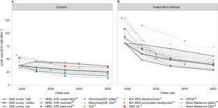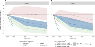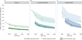 This study was conducted under the auspices of the IEA Wind Implementing Agreement for Cooperation in the Research, Development, and Deployment of Wind Energy Systems (IEA Wind). It is authored by staff at Lawrence Berkeley National Laboratory, funded by the US Department of Energy (DOE) under contract no. DE-AC02-05CH11231 (R.W., J.R., J.S.). It is also authored by staff at the NREL, operated by Alliance for Sustainable Energy, LLC, for the DOE under contract no. DE-AC36-08GO28308 (P.B., E.L.). Funding was provided by the DOE Office of Energy Efficiency and Renewable Energy, Wind Energy Technologies Office. The views expressed here do not necessarily represent the views of the DOE or the US Government. The US Government retains and the publisher, by accepting the article for publication, acknowledges that the US Government retains a nonexclusive, paid-up, irrevocable, worldwide license to publish or reproduce the published form of this work, or allow others to do so, for US Government purposes. We especially thank our IEA Wind collaborators: V. Berkhout, G. Bohan, J. Hethey, S. Kalash, L. Kitzing, Y. Kikuchi, S. Lüers, M. Noonan, A. M. Østenby, A. Dalla Riva, T. Stehly, M. Stenkvist and T. Telsnig. These collaborators were involved from the outset of this project: offering crucial feedback on overall objectives, survey design and specific questions; piloting draft versions of the survey; and suggesting experts to include in the sample. For additional assistance in identifying possible survey respondents and/or the curation of the leading expert group, we thank: I. Martí, K. Ohlenforst, H. Stiesdal, M. Hall, F. Zhao, D. Weir, P.-J. Rigole, F. Klein, S. Barth, C. Bottasso, G. Smart, P. Veers, K. Ralston, A. Gambhir, J. Hensley, W. Musial, G. Du, A. Smith, I. Komusanac, A. Lemke, J. Lee and A. Pek. For input on survey objectives and design, we also thank R. Tusing, M. Taylor, M. Bolinger, J. McCann, K. Ohlenforst, K. Dykes and A. Barr. The survey was implemented online via Qualtrics software, but required considerable customization. We greatly appreciate WALKER for assistance in survey implementation and execution, with special thanks to R. Fanning, J. Connolly and J. Wiggington. Of course, this work would not have been possible without the gracious contributions of the experts who chose to participate in the survey. We list those individuals and their affiliated organizations in Supplementary Table 5.