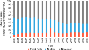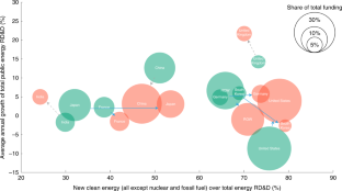 We acknowledge funding from the Hellman Fellows Fund; the Institute for Advanced Sustainability Studies; the US Department of Agriculture National Institute of Food and Agriculture, Hatch Project accession number 1020688; the William and Flora Hewlett Foundation, grant number 2019-9339, regranted through the California–China Climate Institute; the China Scholarship Council; and the EU Framework Programme for Research and Innovation H2020 under grant agreement number 730403 (INNOPATHS). We thank J. Guy and S. Vogel for comments on a draft manuscript. We thank N. Goedeking for research assistance, S. Kolesnikov for assistance in developing the methodology behind collecting public energy RD&D funding data for India and several colleagues for Korean language assistance. We are grateful to J. Sauer for assistance with the Freedom of Information requests for German public energy RD&D funding data.