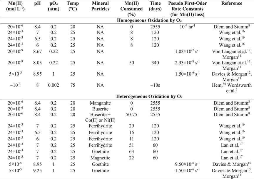 Extended Data Table 1 Homogeneous and heterogeneous Mn(II) oxidation rates by oxygen