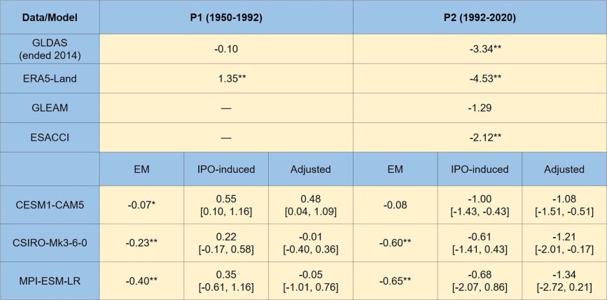 Extended Data Table. 1 Observed and simulated trends in surface soil moisture content over southern Central Asia