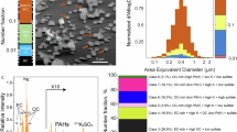 Smoke aerosol particles were sampled using an impactor sampler (AS-24W, Arios Inc.) with TEM grids with Formvar substrates (U1007, EM-Japan). The 50% cut-off sizes used for the TEM grid sampling were 100 nm and 700 nm, respectively, in aerodynamic diameters. Sampling was conducted to cover each transect of smoke, with sampling times of ~1 to 3 min and an airflow rate of 1.0 l min–1. For this study, 9 TEM grids (3,275 particles in total) were analysed corresponding to samples from the Castle and Ikes and Shady Creek fires using a scanning TEM (STEM; JEM-1400, JEOL) equipped with an energy-dispersive X-ray spectrometer (EDS; X-Max 80 mm, Oxford instruments). An acceleration voltage of 120 keV and an acquisition time of 20 s was used for STEM-EDS measurements. We chose two or three areas with ~100 particles at a magnification of 6000× in STEM mode. Volatile and semi-volatile aerosol particles such as volatile organic compounds and nitrates would be lost after the sampling and in the vacuum TEM chamber. The smallest particle cut-off size for STEM-EDS analyses was an area-equivalent diameter of 0.25 µm in the STEM images. Relative weight percentages within each particle measured by STEM-EDS were obtained for C, N, O, Na, Mg, Al, Si, P, S, Cl, K, Ca, Ti, Mn, Fe and Zn. The size-dependent number fractions are shown in Supplementary Fig. 3. Carbonaceous particles dominate in most particle sizes.