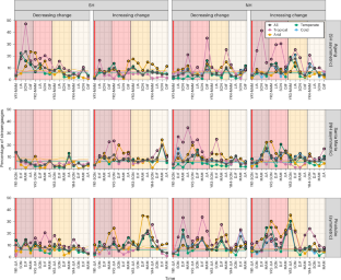 Extended Data Fig. 3 Changes over time in the prevalence of the 2-year return interval discharges in response to tropical volcanic eruptions.