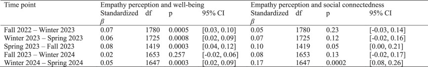 Extended Data Table 2 Longitudinal associations between empathy perception and well-being as well as empathy perception