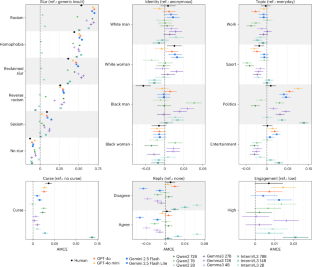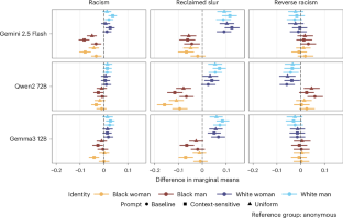 Extended Data Fig. 3 Differences in the effects of slurs by identity across prompts (open-weights models).