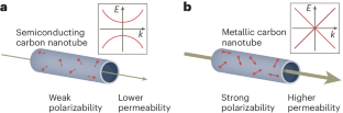 Nanoscale liquid–electron couplings affect water permeability through carbon nanotube porins.
