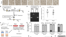pDC2–Cas9–U6–hdhfr plasmid expressing pyogenes Cas9 was used in this study. Guide RNA sequences were identified using Benchling. The TATTTATATTCTCAATTGAA and TTATATTCTCAATTGAATGG sequences targeting the 3′ end of the first exon, upstream of the TGG protospacer-adjacent motif and 5′ end of the second exon upstream of the TGG protospacer, respectively, were cloned into the pDC2-Cas9-U6-hdhfr (pDC2 plasmid 1) and used to target Cas9 in the first Cas9-mediated editing step (Fig. 1a). The CCCTTCAATAGATTCGCACA sequence towards the 3′ end of the second exon, upstream of the CGG protospacer-adjacent motif, was cloned into the pDC2-Cas9-U6-hdhfr (pDC2 plasmid 1) and used to target Cas9 in the second Cas9-mediated editing step. Sequences of all the oligonucleotides and primers used are listed in Supplementary Data 8.