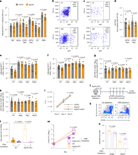 Extended Data Fig. 9 Impact of PDIM, autophagy, and PMN-depletion on myeloid responses in the lung.