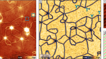 The details of sample preparation and fabrication are described in Methods. The magnetic hysteresis loops of the unpatterned SAF films exhibit a typical spin-flop transition when a field is applied perpendicular to the film along the easy magnetic axis20. The moments of the upper and lower FM layers are nearly compensated for, so that the remnant magnetization in zero field is almost zero. A very large magnetic field overcomes the antiferromagnet coupling to bring the upper and lower FM moments parallel to one another: the saturation moment \(m_{\mathrm{s}}^{\mathrm{{SAF}}}\) is ~40 μemu with a spin-flop transition field \(H_{{\mathrm{sf}}}^{\mathrm{{SAF}}}\) of ~3 kOe. The remnant moment \(m_{\mathrm{R}}^{\mathrm{{SAF}}}\) is ~1 μemu. Hence, the ratio of the upper layer moment to the lower layer moment is \(\frac{{m_{\mathrm{U}}}}{{m_{\mathrm{L}}}}\approx 1.05\) so that the current-driven DW motion is dominated by a giant exchange coupling torque (ECT) derived from the SAF structure5. The spin-flop transition shows that the antiferromagnet exchange coupling is large compared to the anisotropy of the FM layers20. The resist protects the upper layer of the SAF regions against oxidation during processing, as verified from magnetic hysteresis loop measurements on blanket unpatterned films (Fig. 1b). However, the FM films that are created by the oxidation of the SAF films have a coercivity \(H_{\mathrm{c}}^{\mathrm{{FM}}}\) of ~0.1 kOe and a saturation moment \(m_{\mathrm{s}}^{\mathrm{{FM}}}\) of ~20 µemu that is nearly half of \(m_{\mathrm{s}}^{\mathrm{{SAF}}}\), that is, corresponding to the moment of the lower FM layer in the SAF. This clearly shows that the oxidation process does not affect the lower FM layer at all, while completely suppressing the magnetism of the upper layer (Fig. 1b).