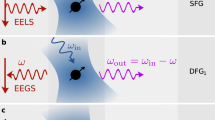 Pump–probe studies of field-driven dynamics are usually performed by combining a harmonic optical excitation (light frequency ω) with probing pulses of durations below the optical cycle T = 2π/ω (for example, isolated pulses or pulse trains in the optical domain7,75, and recently attosecond electron pulse trains35,36,37,44,76). Sub-cycle light-driven dynamics can also be probed by reconstructing the full quantum state of a system using coherent excitation and probing schemes, thus giving access to its full temporal evolution, as performed for interferometric frequency-resolved optical gating or reconstruction algorithms such as SQUIRRELS for electrons35. This concept is essential for FREHD (Fig. 1), which probes complex light-driven dynamics at the nanoscale by coherently modulating the electron wavefunction both at a sample (coupling g) and at a reference (coupling gref).