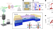Figure 1b (left inset) shows a two-dimensional map of the z component of the magnetic field measured when the YBa2Cu3O7 disc is cooled to T = 30 K < Tc. As predicted from the simulations, we observed a reduction in the local magnetic field when measuring above the disc (blue area) and a corresponding enhancement near the edge (red area). The amplitude of the measured changes is determined by the geometry of the experiment and by the thickness of the detection crystal (Supplementary Section 8). The same measurement was repeated at T = 300 K > Tc. The results are displayed in Fig. 1b (right inset), showing that when the YBa2Cu3O7 disc is in its normal state, no spatial dependence of the local magnetic field is detected.