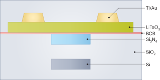 Lithium tantalate (LiTaO3) is heterogeneously integrated with silicon photonics circuits, enabling high modulation speed, reduced bias drift and a high optical damage threshold, while ensuring full compatibility with the existing silicon photonics process design kit.