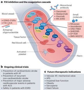 Factor XIa inhibitors are being tested in clinical trials, with the assumption that these agents are as effective as direct oral anticoagulants but cause fewer bleeding events. Findings from phase II trials of direct inhibitors of factor XIa for the prevention of first-ever and recurrent ischaemic stroke or recurrent major coronary artery events suggest fewer bleeding events but with uncertainty about efficacy.