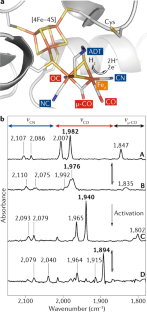 Nicolet, Y. et al. Crystallographic and FTIR spectroscopic evidence of changes in Fe coordination upon reduction of the active site of the Fe-only hydrogenase from Desulfovibrio desulfuricans. J. Am. Chem. Soc. 123, 1596–1601 (2001).