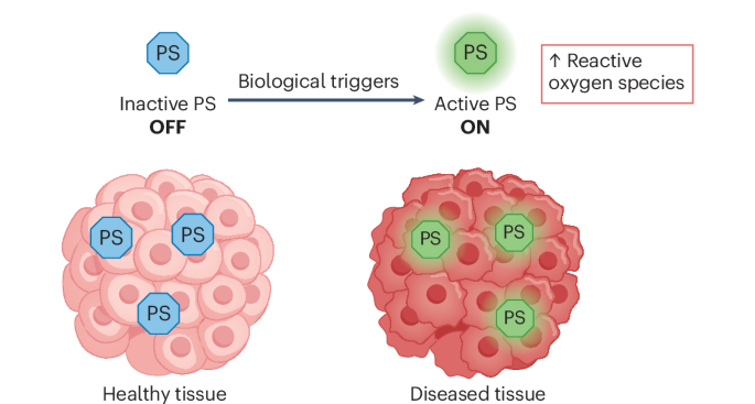 Activatable organic photosensitizers (PS) are designed for targeted photodynamic therapy (PDT), reducing off-target toxicity by activating only at disease sites.