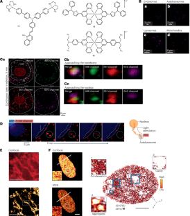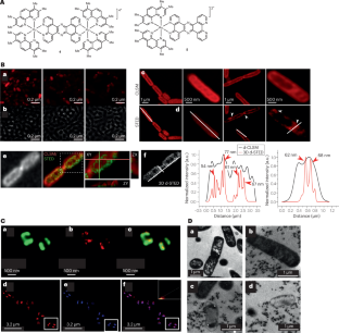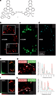 Sreedharan, S. et al. Multimodal super-resolution optical microscopy using a transition-metal-based probe provides unprecedented capabilities for imaging both nuclear chromatin and mitochondria. J. Am. Chem. Soc. 139, 15907–15913 (2017). This highly photostable, cell-permeant complex with a large Stokes shift is found to be a multimodal probe that can be used for imaging mitochondria and nuclear chromatin by SIM, STED and 3D STED in both fixed and live cells, as well as a TEM contrast stain.