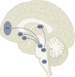 Fowler, C. D., Lu, Q., Johnson, P. M., Marks, M. J. & Kenny, P. J. Habenular alpha5 nicotinic receptor subunit signalling controls nicotine intake. Nature 471, 597–601 (2011). This article discusses the implication of the α5 nicotinic receptor located in the MHb in a mechanism mediating the aversive effects of nicotine.
