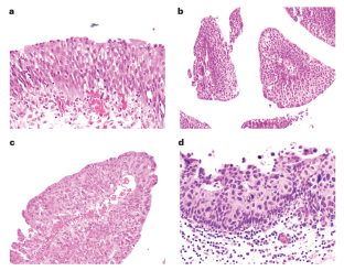 Hurst, C. D. et al. Genomic subtypes of non-invasive bladder cancer with distinct metabolic profile and female gender bias in KDM6A mutation frequency. Cancer Cell 32, 701–715.e7 (2017). The authors defined two major genomic subtypes of primary-stage Ta tumors and found that more mutations in the histone lysine demethylase KDM6A were present in non-invasive tumours from women than in those from men, supporting the hypothesis that male and female bladder cancers have both common and different biological drivers.