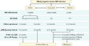 Brunetto, M. R. et al. Hepatitis B surface antigen serum levels help to distinguish active from inactive hepatitis B virus genotype D carriers. Gastroenterology 139, 483–490 (2010). A landmark study on the HBsAg level of <1,000 IU/ml for the identification of carriers of inactive HBV.