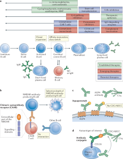 Zhang, C. et al. Safety and efficacy of bortezomib in patients with highly relapsing neuromyelitis optica spectrum disorder. JAMA Neurol. 74, 1010–1012 (2017). This article presents the successful depletion of long-lived plasma cells by proteasome inhibition, demonstrating the potential as a new treatment in antibody-mediated neurological diseases.